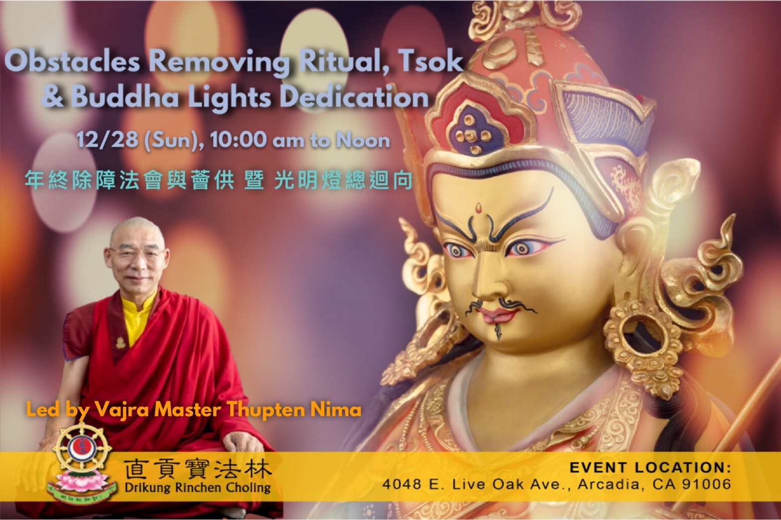Ven. Lama Thupten Nima will lead a special Guru Rinpoche Prayer with Tsok and Summoning of Good Fortune (White Zhambhala) on 12/28/2025(Sunday) to remove obstacles and accumulate merits. The ceremony will start at 10am. We will also dedicate the merit to all the Buddha Lights sponsors in 2025. We cordially invite you to join us in person or through Zoom online on this special day.