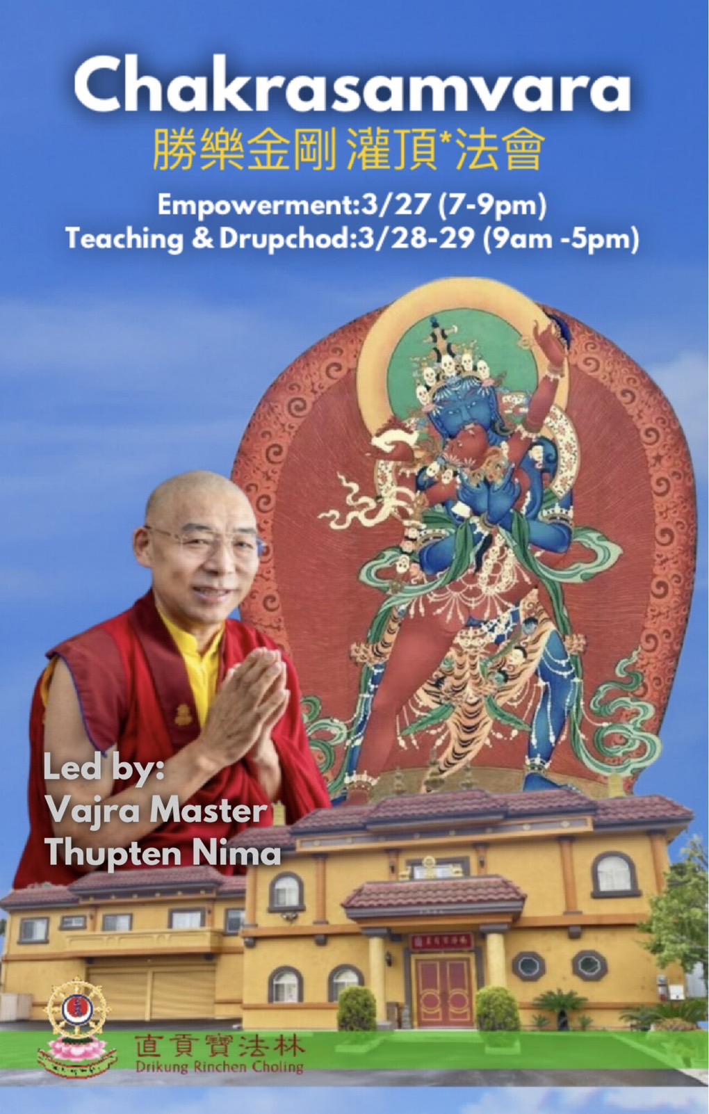 Our center will host the “Chakrasamvara Empowerment and Drupchod” from March 27 (Friday) to March 29 (Sunday), 2026. We sincerely invite you to set aside time to participate and share in the blessings of the Dharma.