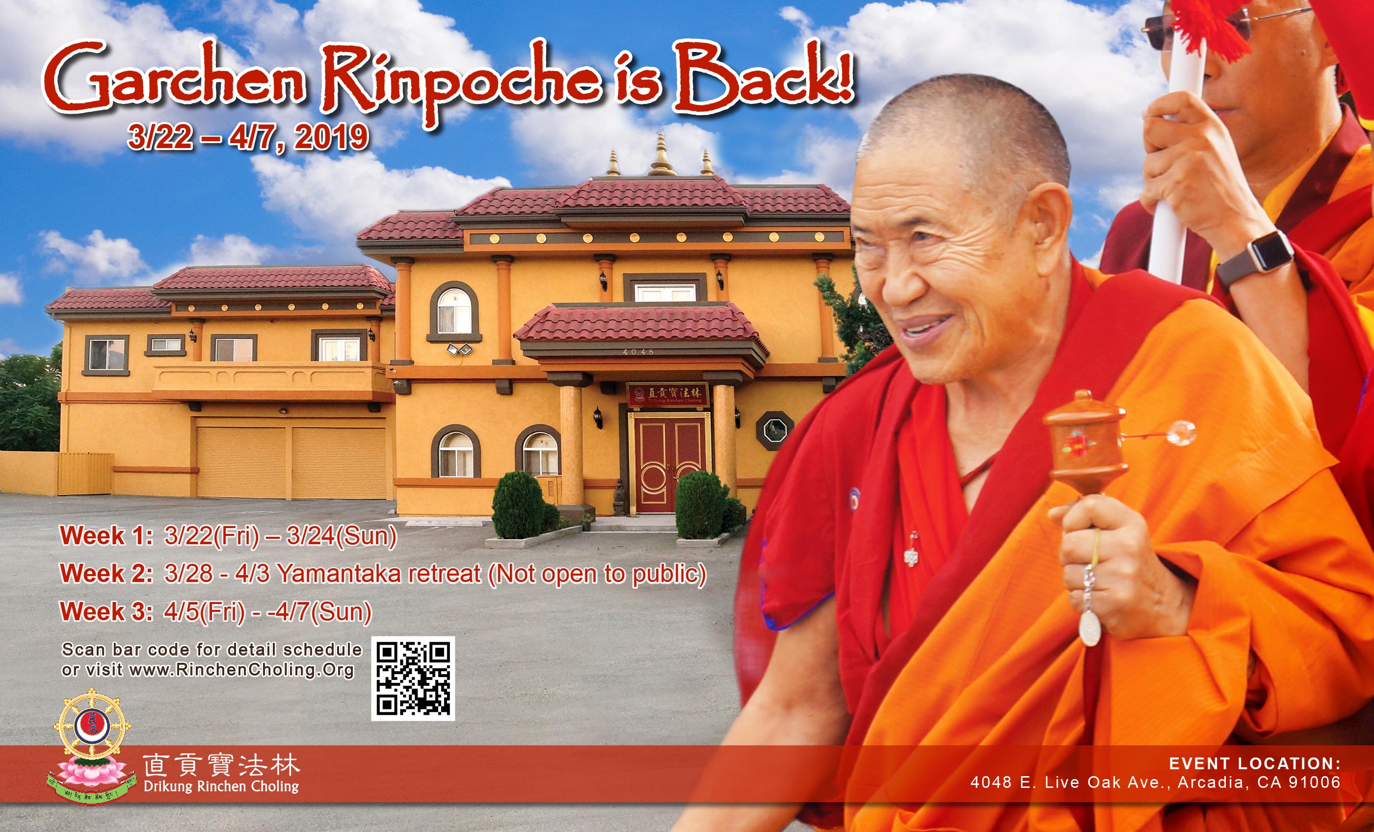 Our Kind Guru the 8th Garchen Rinpoche will be back to Rinchen Choling for three weeks. Aside from a closed retreat, he will bestow teaching on the 1st and the 3rd weekend. Tentative schedule as follow: